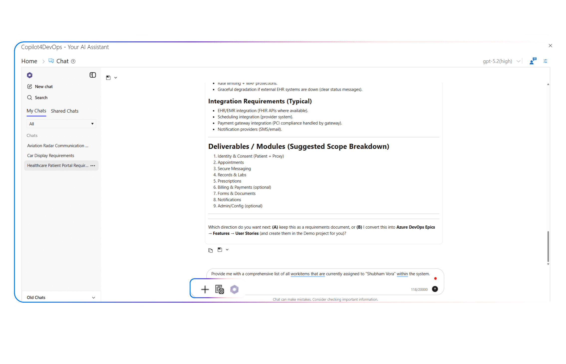 - As a Team Lead, I use AI chat to get the summary of the “Citizen Portal Phase 2” project’s progress without switching between ADO work items.