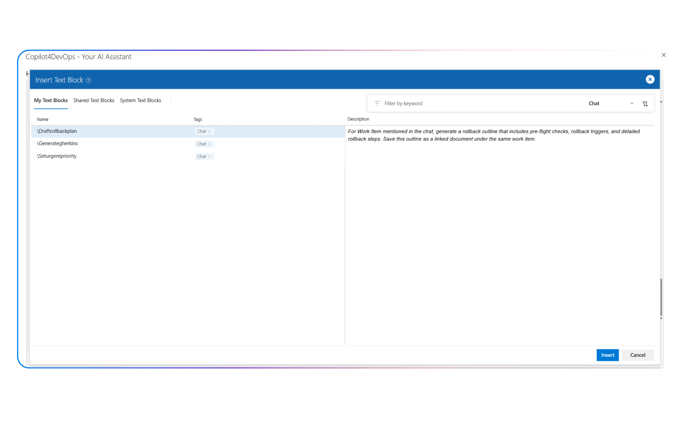 Create, manage, and save customized prompts to generate tailored results based on your needs. Mainly helpful to perform any custom actions, such as filtering and analyzing Azure work items and preparing compliance reports using custom prompts.
