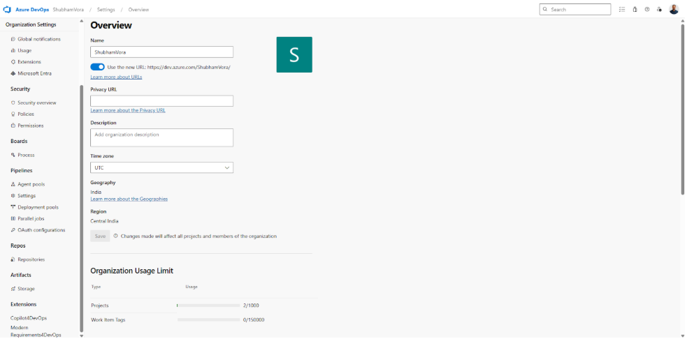 Step 2: Then, open Azure DevOps, and go to the “Organization settings”.