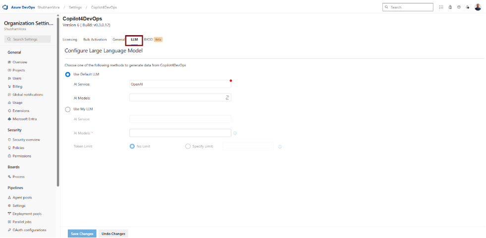 However, if your team wants higher token availability or prefers to manage LLM usage directly, you can connect your own LLM with Copilot4DevOps, which is covered in the next section.