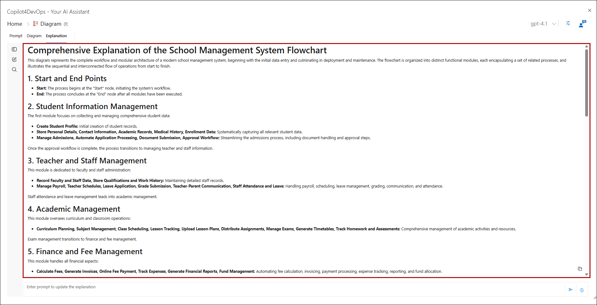 • With the Prompt option at the bottom, users can enter a prompt to update the explanation for the diagram.