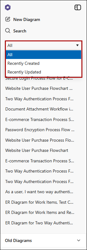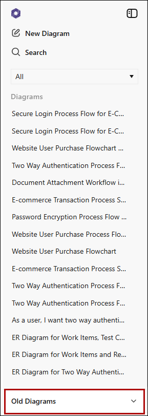 • History Panel sidebar is accessible in both Prompt and the Diagram tab. At any point of time users can access any previously generated diagram without any hassle.