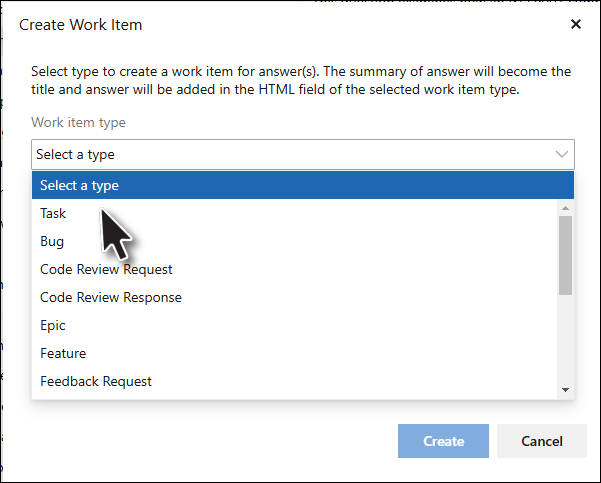 a. Select the work item type from the dropdown menu to publish the answer(s).