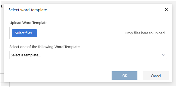 1. In the popup, click Select files... if you want to upload your own template.
