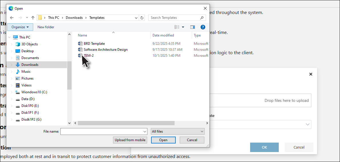 • Uploaded Templates (user-defined, uploaded via “Select files...”)