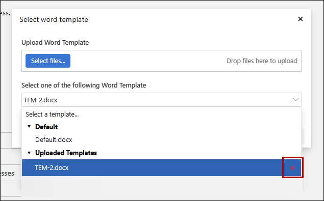 Note: Default.docx template is available by default. Uploaded Templates will only show if you have added custom templates.