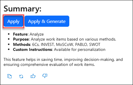 5. Clicking Apply will set the feature and the AI-suggested pre-configured values.