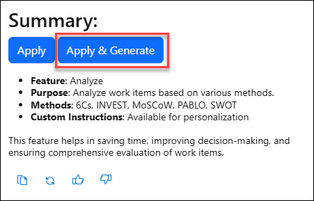 4. 'Apply' and 'Apply & Generate' options are shown if it’s applicable to user query.