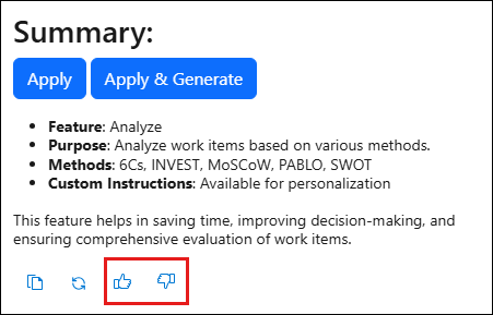 10. Give feedback on response by clicking the Like (👍) or Dislike (👎) button.